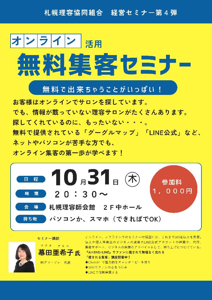 経営セミナー第4弾 オンライン活用で「無料集客セミナー」